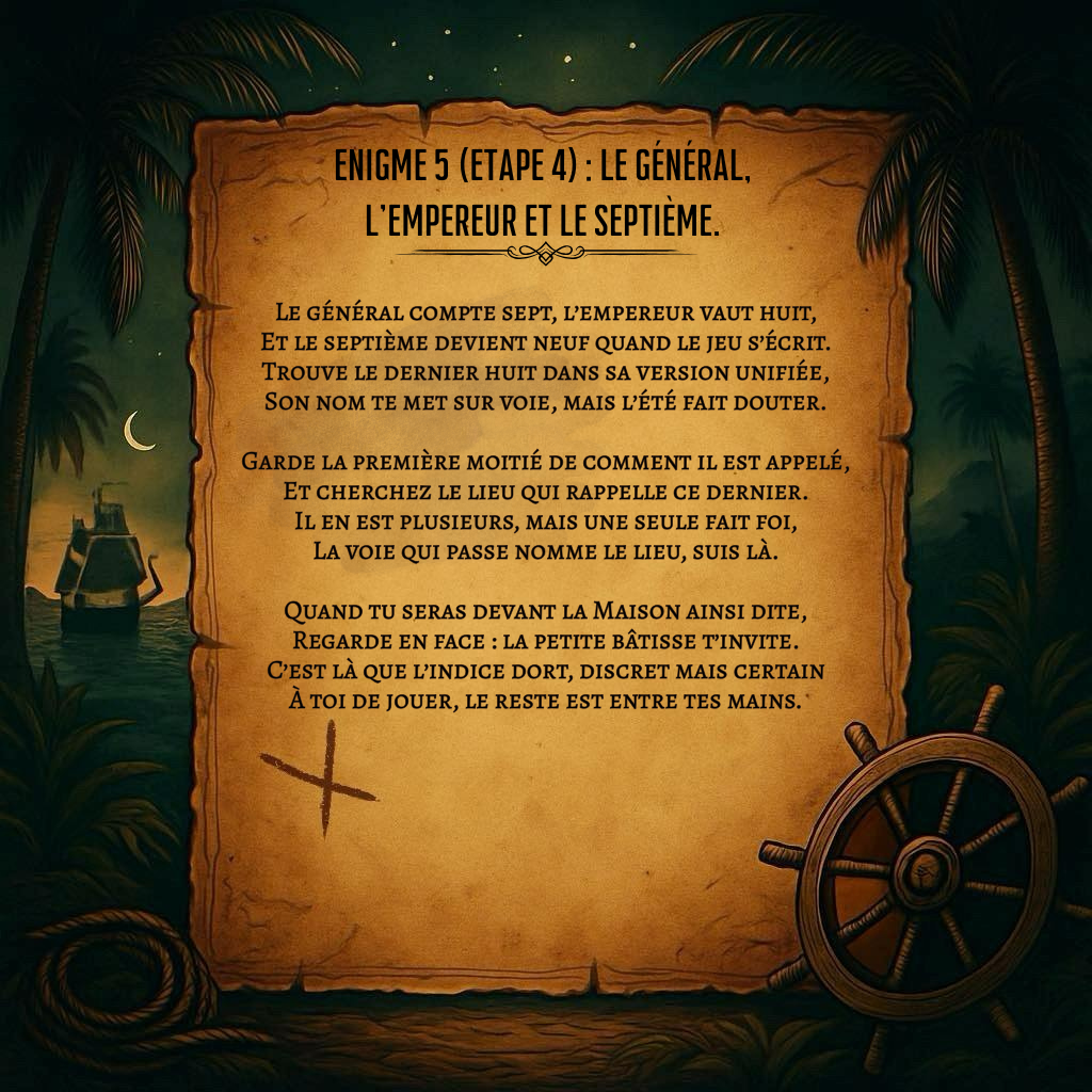 Enigme 5, étape 4 : le Général, l'Empereur et le septième.